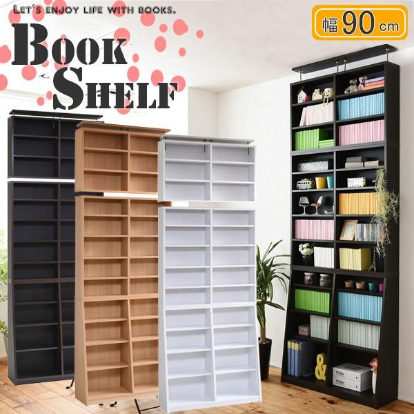 幅90 天井突っ張り棚付き コミック本ラック 本棚 スリム 薄型 新生活