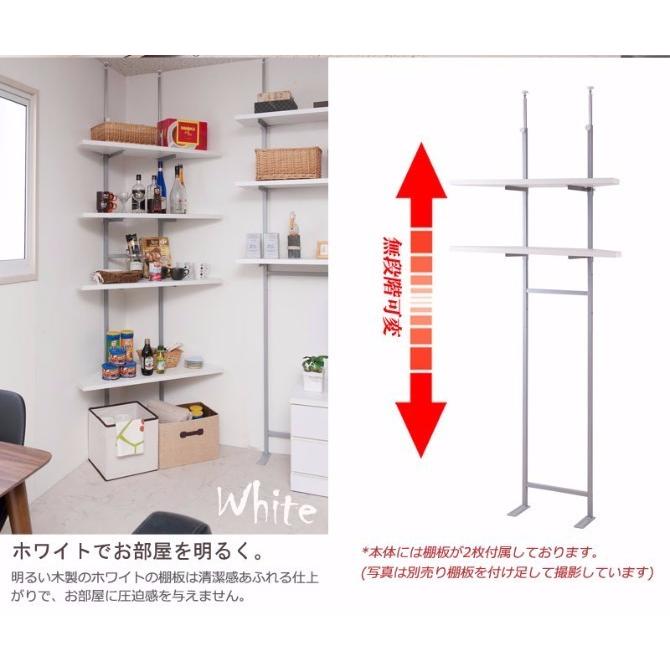 突っ張り棒式コーナーラック 棚2段 ホワイト シンプル 収納ラック