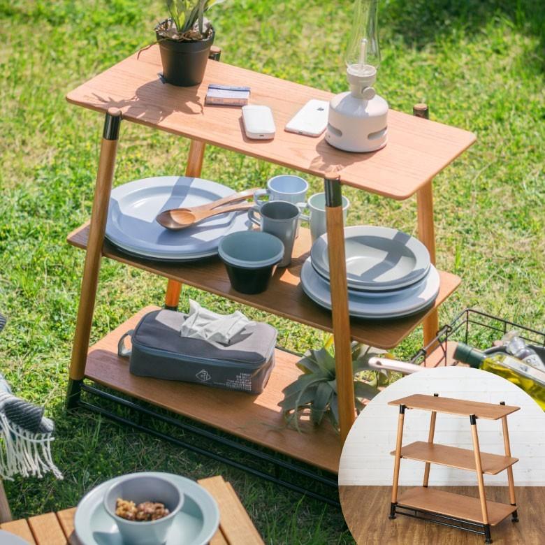 キャンプラック 木製 3段 幅70cm 奥行38cm 高さ71cm 軽量 98604