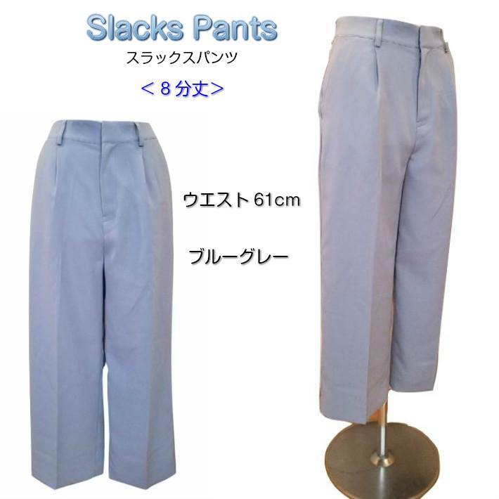 レディーススラックス パンツ 8分丈 ゆったり ブルーグレー W61cm 送料