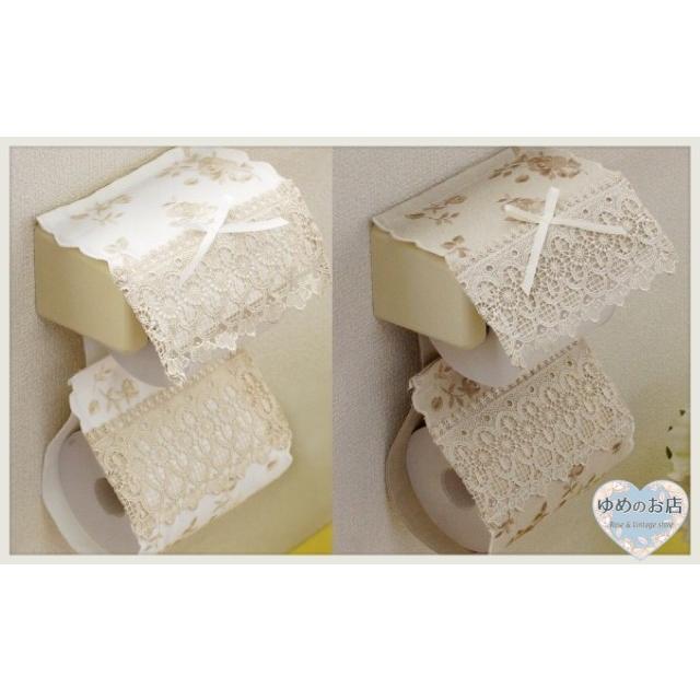 トイレットペーパーホルダー カバー ローズ 薔薇雑貨 バラ 刺繍 レース