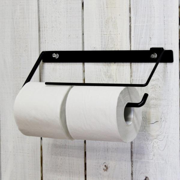 ペーパーホルダー トイレ 2連 アイアン おしゃれ ダブル 黒 ペーパー