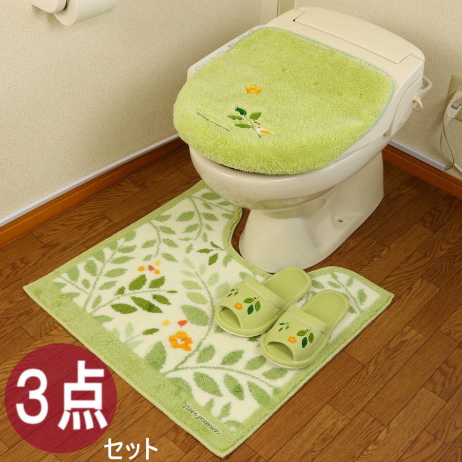 トイレマット 3点 セット スリッパ 洗える おしゃれ 風水 北欧 リーフ