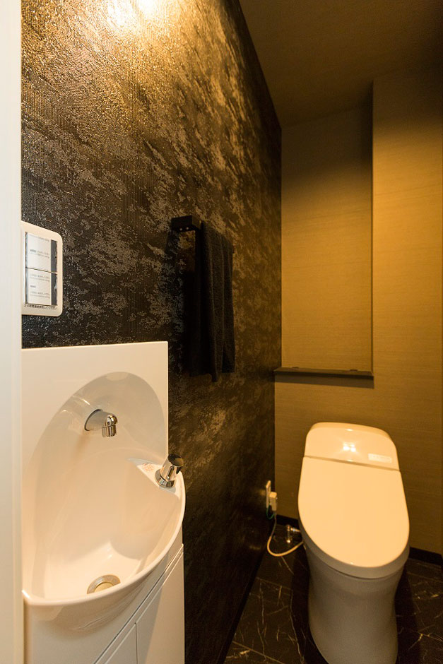 トイレは黒とグレーの壁紙を使い シックで非日常な空間に 他の間取り