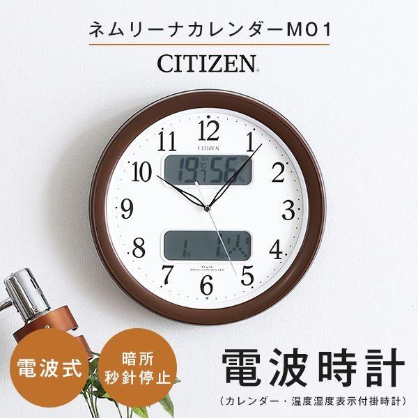 シチズン 壁掛け時計 電波時計 ネムリーナカレンダー ブラウン 直径