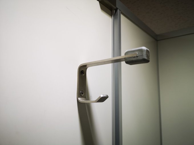 上の金具は 荷物をかけるため ではなかった 公共のトイレでドアの
