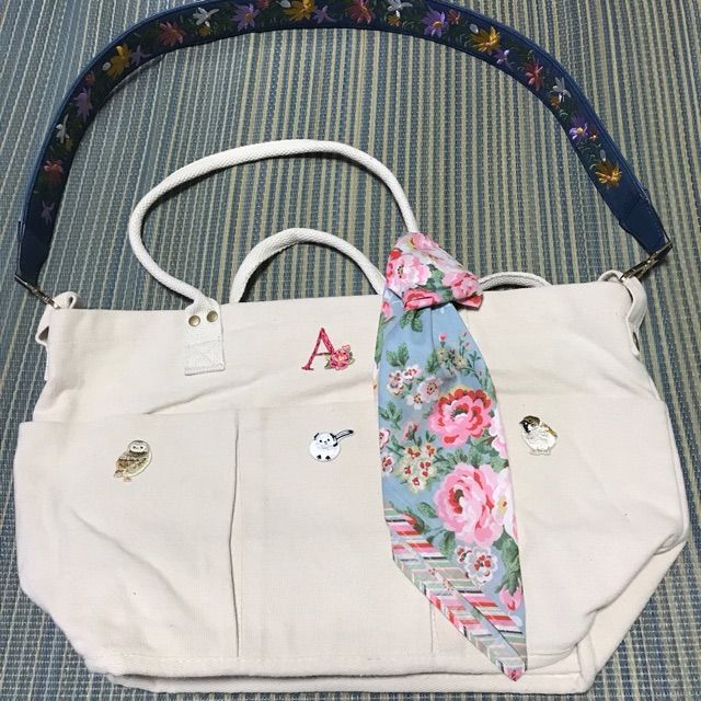ニトリのベジバッグ マルチポケットトートバッグm をリメイク 鳥と本