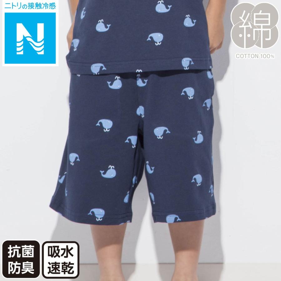 キッズ用ひんやりルームウェア パンツ コットン クジラ120 ニトリ