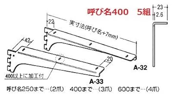 Amazon ロイヤル 木棚受 A 32 33 クローム 400mm 左右 2本セット5組入 棚受