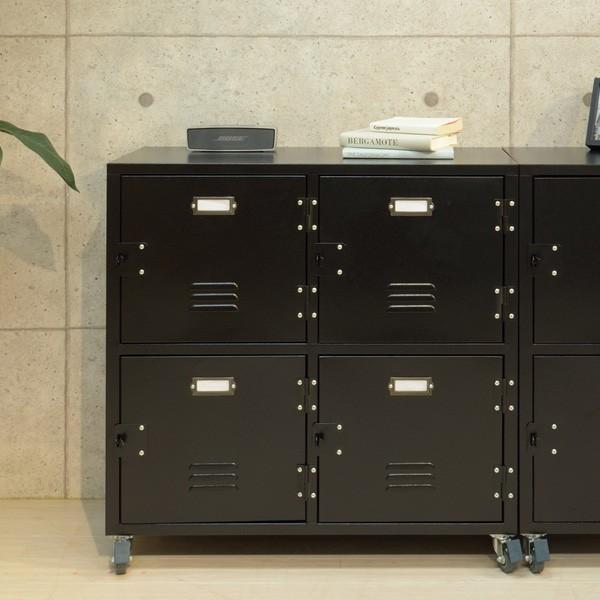 チェスト ロッカー風 2段 4扉 キャスター付き スチール製 91251