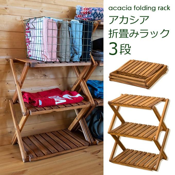 ラック 棚 木製 おしゃれ 折り畳み 3段 アウトドア キャンプ 衣類収納