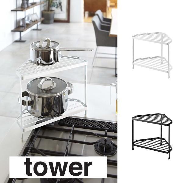 楽天市場 Tower タワー キッチンコーナーラック ラック 収納 コンロ 三角 フライパン 鍋 調味料 調理 シンプル おしゃれ シゼム楽天市場支店