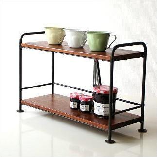 飾り棚 卓上 スパイスラック おしゃれ 木製 アイアン 天然木 2段
