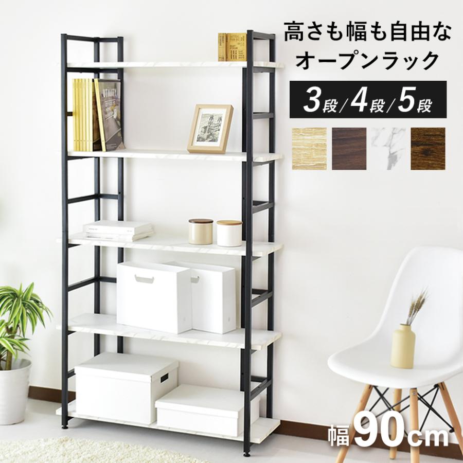 オープンシェルフ 収納 4段 幅90 シェルフ ラック 幅90cmタイプ 本棚