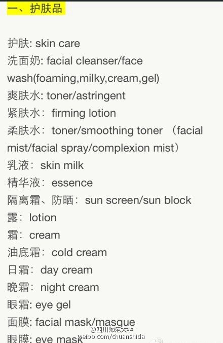 常用护肤品中英文对照 堆糖 美图壁纸兴趣社区