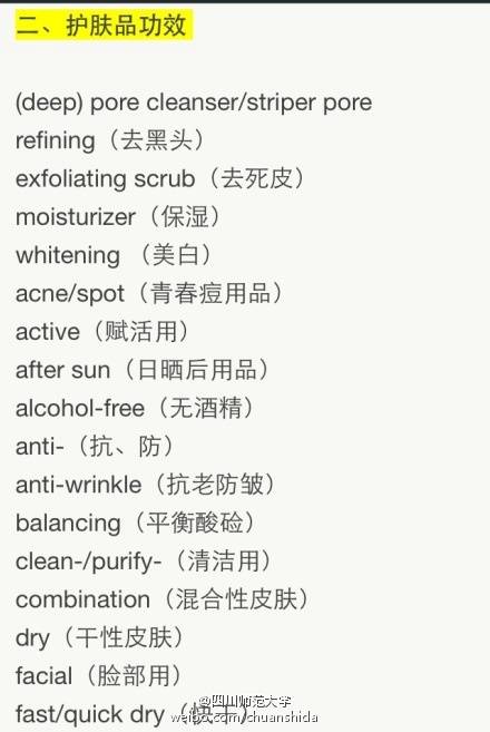 理容要专业护肤品常用中英文对照表 图 理容资讯 太平洋时尚网