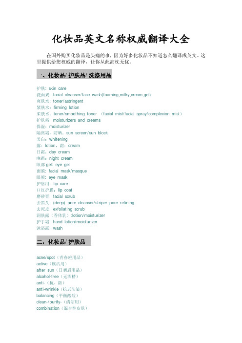 理容要专业护肤品常用中英文对照表理容护肤之道 A货网