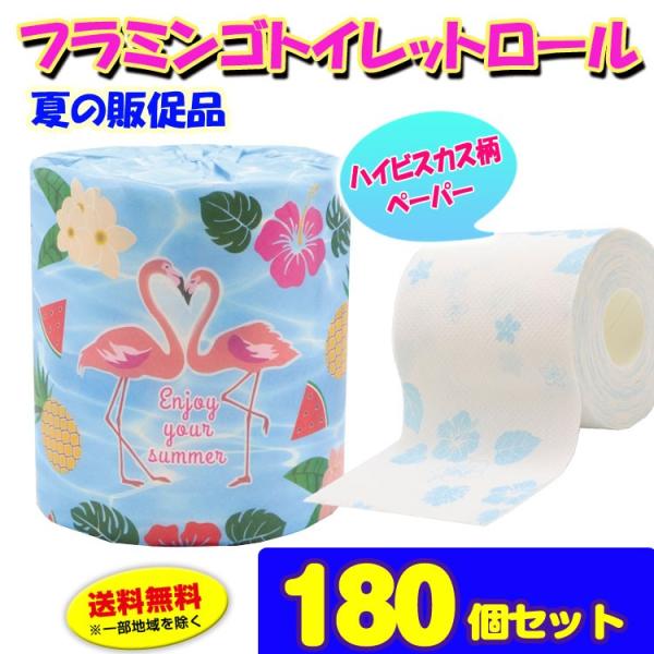 夏販促品 ハワイアン風 夏販促品 フラミンゴトイレットロール180個セット 3c S ハイビスカス柄トペーパー個包装 縁日 夏
