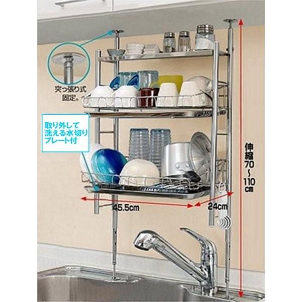 突っ張り 水切りラック シンク上 水切りかご おしゃれ ステンレス