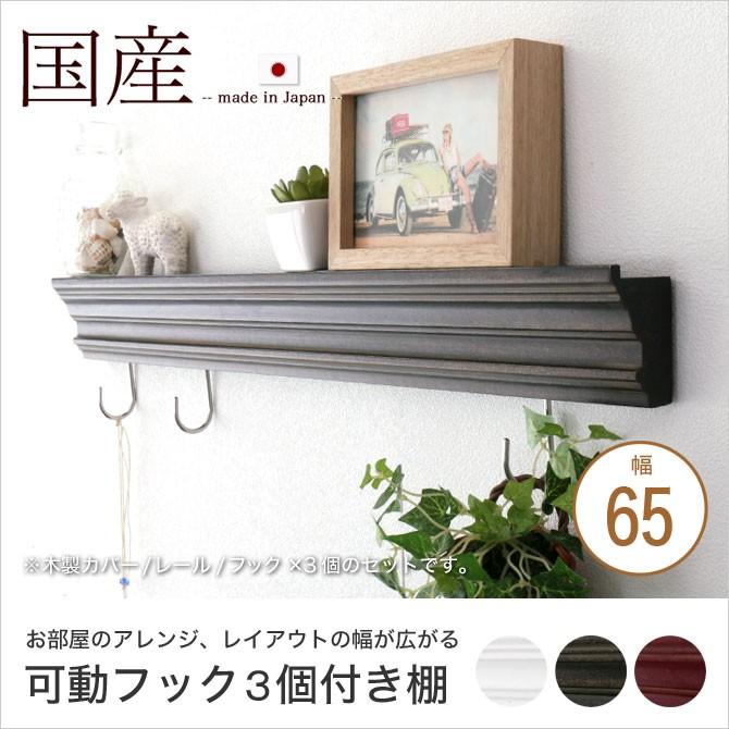 棚 ピクチャーレールセット 長さ65cm 木製カバー フック3個付き 可動式