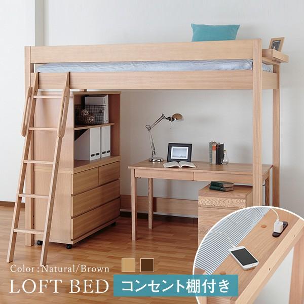ロフトベッド 高さが選べる 棚 コンセント付シンプルロフトベッド