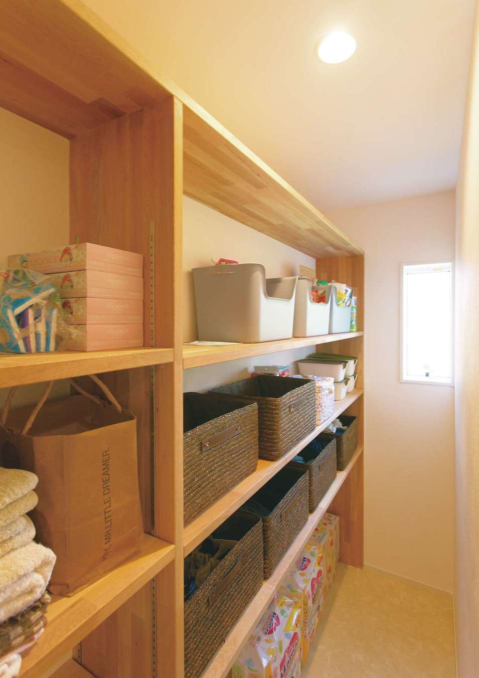 納戸には荷物を整理してしまいやすいように造作棚を設置 イエタテ