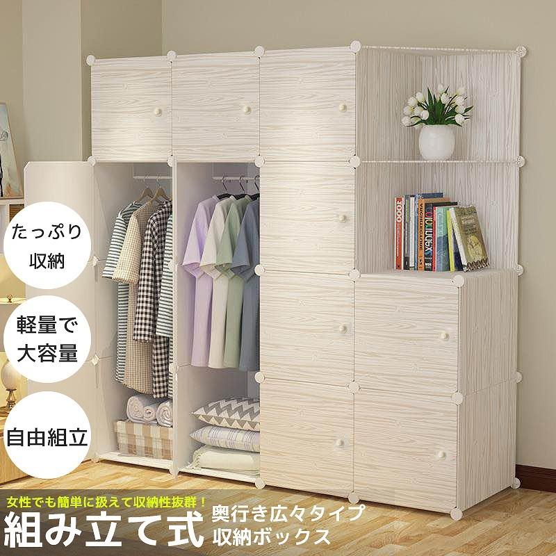 ハンガーラック 木目 白 クローゼット 衣装ケース 収納棚 組み立て式