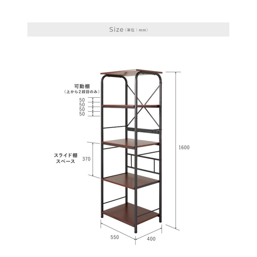 レンジラック ハイタイプ 幅50 高さ160 スライド棚 アイアン レンジ台