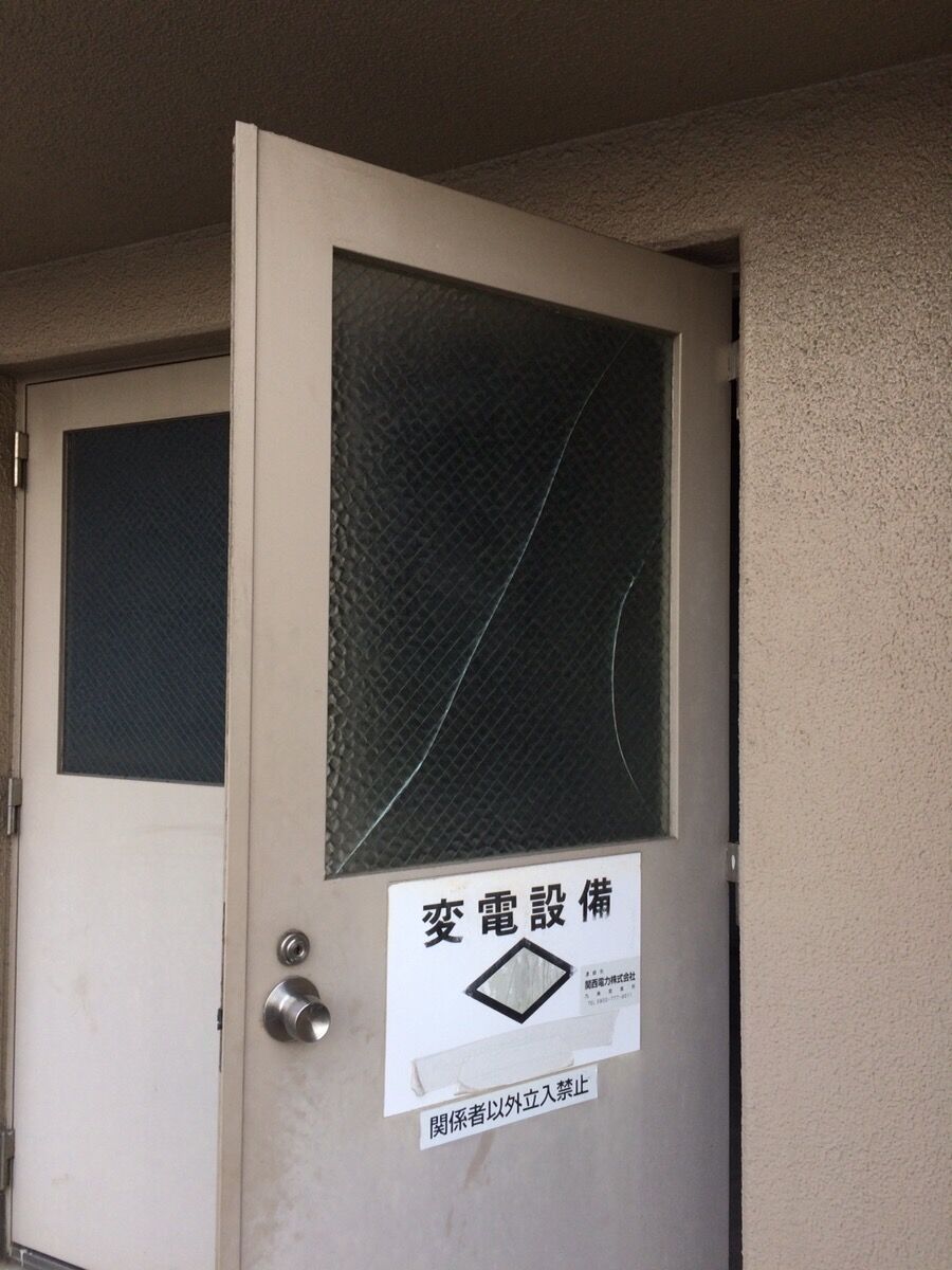 鉄扉の割れたガラスの修理工事 西淀川区マンション 二重窓や防犯窓へ