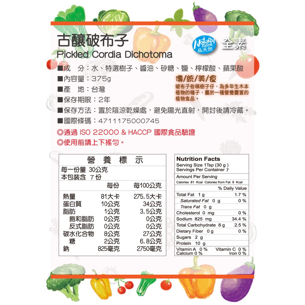 破布子的營養成分