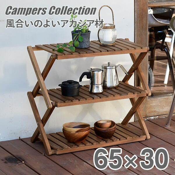Lohaco キャンプラック 木製 3段 幅70cm 奥行38cm 高さ71cm 軽量