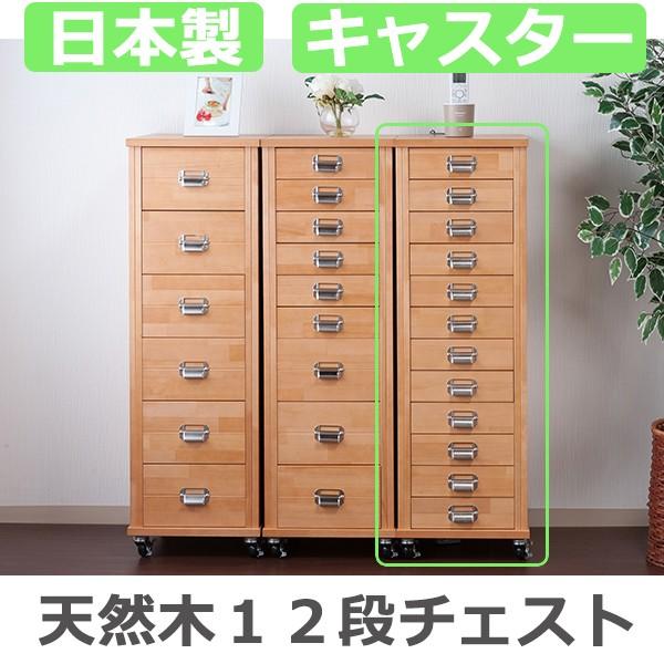 細かく分類収納 木製 12段チェスト 完成品 キャスター付き 引き出し